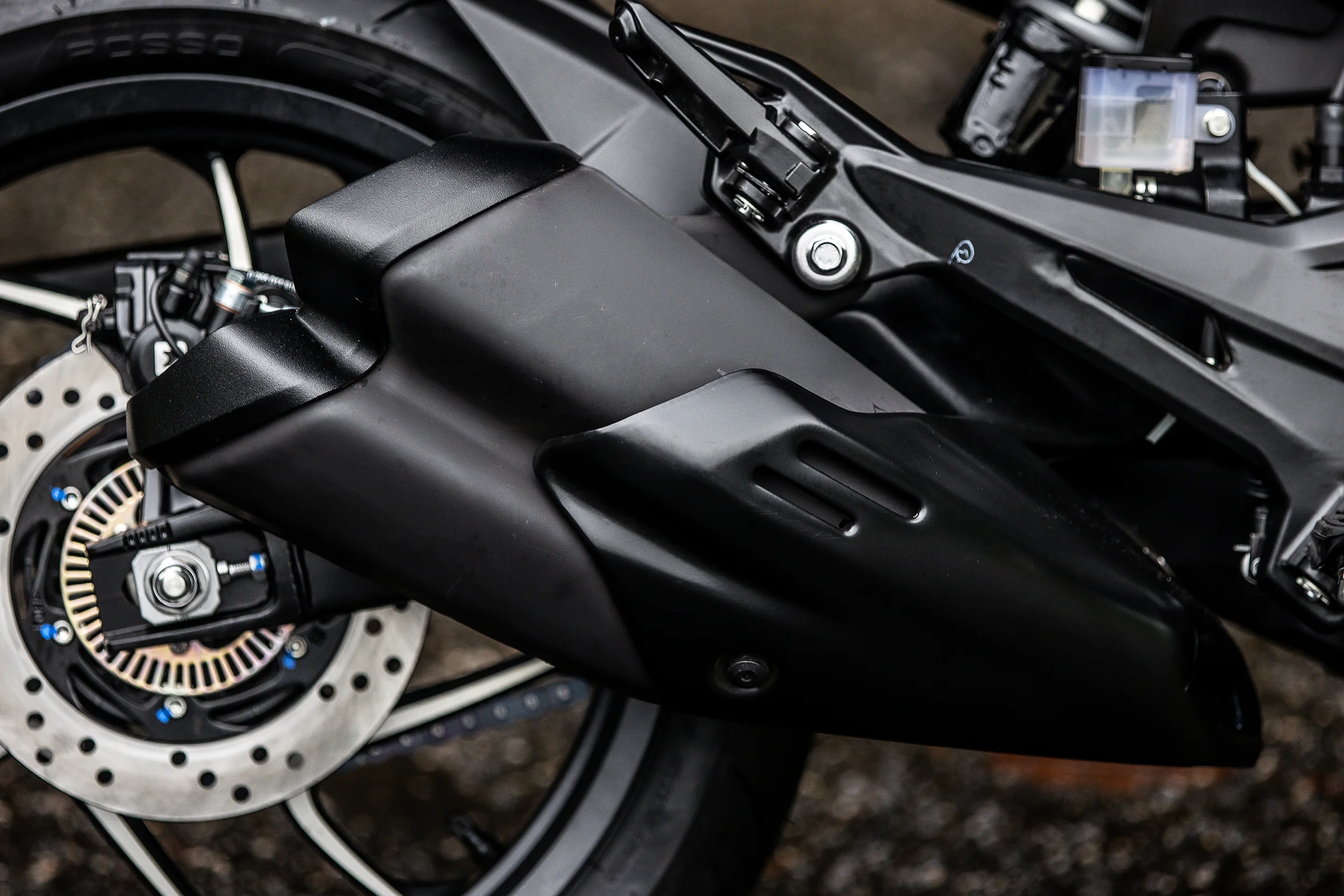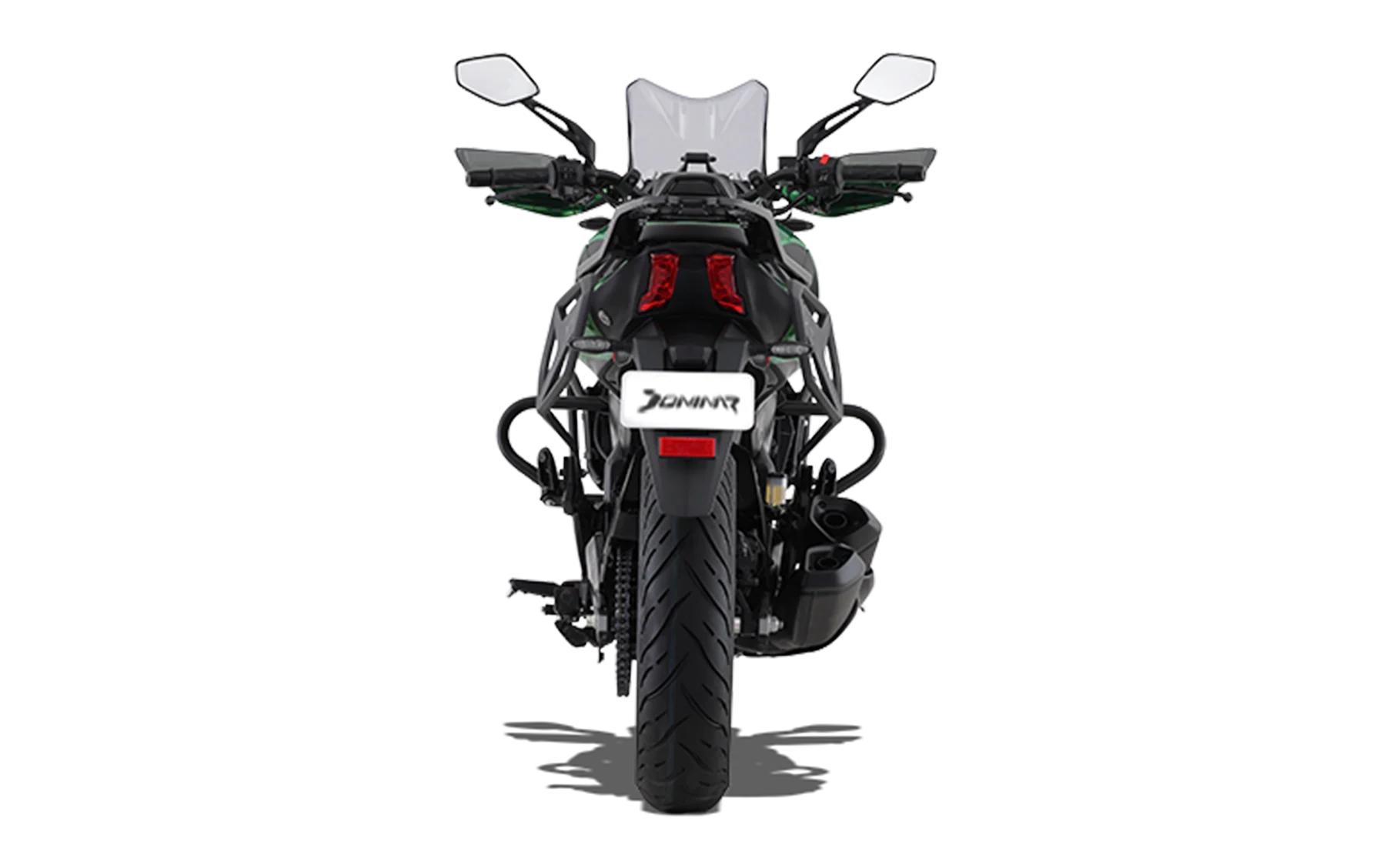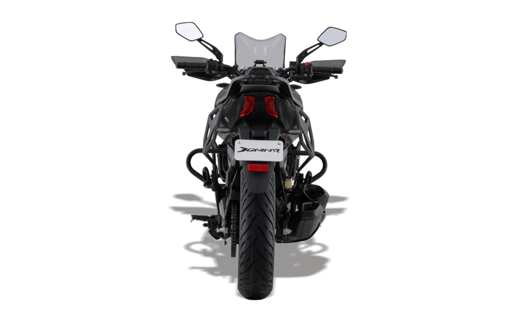 Its USD forks, adjustable rear monoshock, and dual-channel ABS give the Dominar confidence on-road and stability on light off-road patches. A strong perimeter frame enhances control across varied terrains.